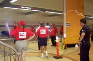 ~ in celebration of the grand opening of a few stops on its ‘red line’, the los angeles m.t.a. was gracious enough to let the citizens ride the red line for free. the angry red planet was there, ready to document every stop. after the first two stops, however, the frustration of being pushed around by the m.t.a. staff who assume that only imbeciles would show up for the train rides was enough to turn us away from the metro. i wonder what they expect people to do in the future, when they are not there to ‘help’ people exit the train or walk up the steps.