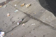 ~ green suited humans have been spotted taking up pieces of garbage from the sidewalk on 115th street. they placed the trash into cylindrical containers, then transported it elsewhere. perplexing.